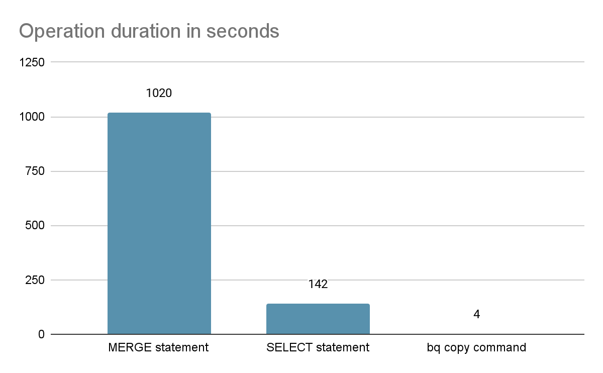So picking the BQ copy approach is definitely a no-brainer. That’s the solution we picked to improve the BQ output on incremental materialization using the insert_overwrite